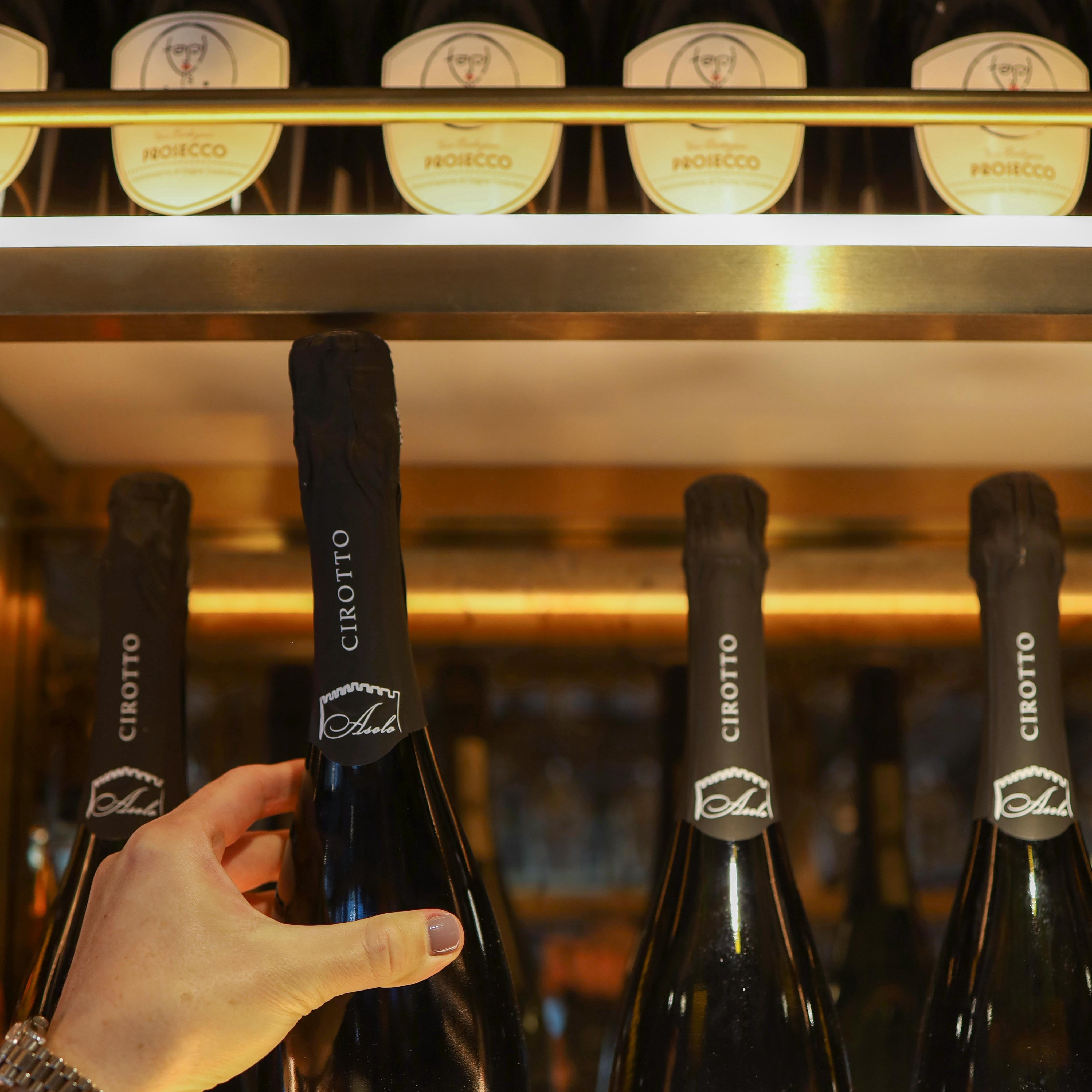 We proudly serve over 28 different styles of Prosecco, all ethically sourced from small, family-run vineyards in Valdobbiadene. These aren’t just bottles, they’re stories, passed down through generations. Every glass is a taste of real craftsmanship and regional pride.